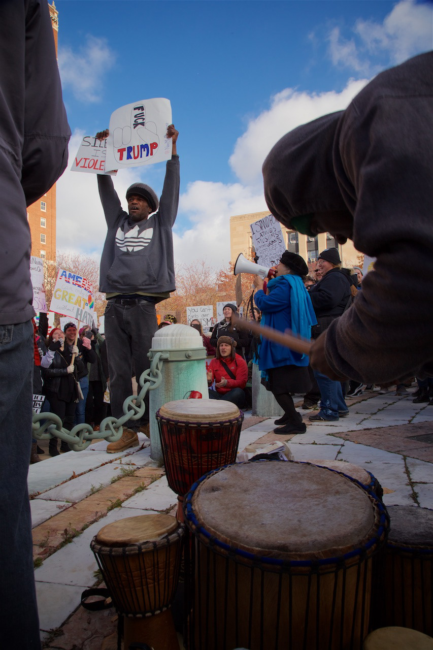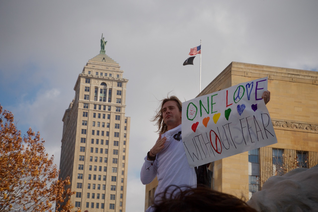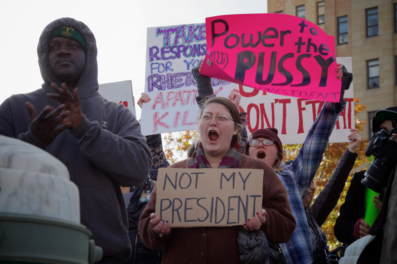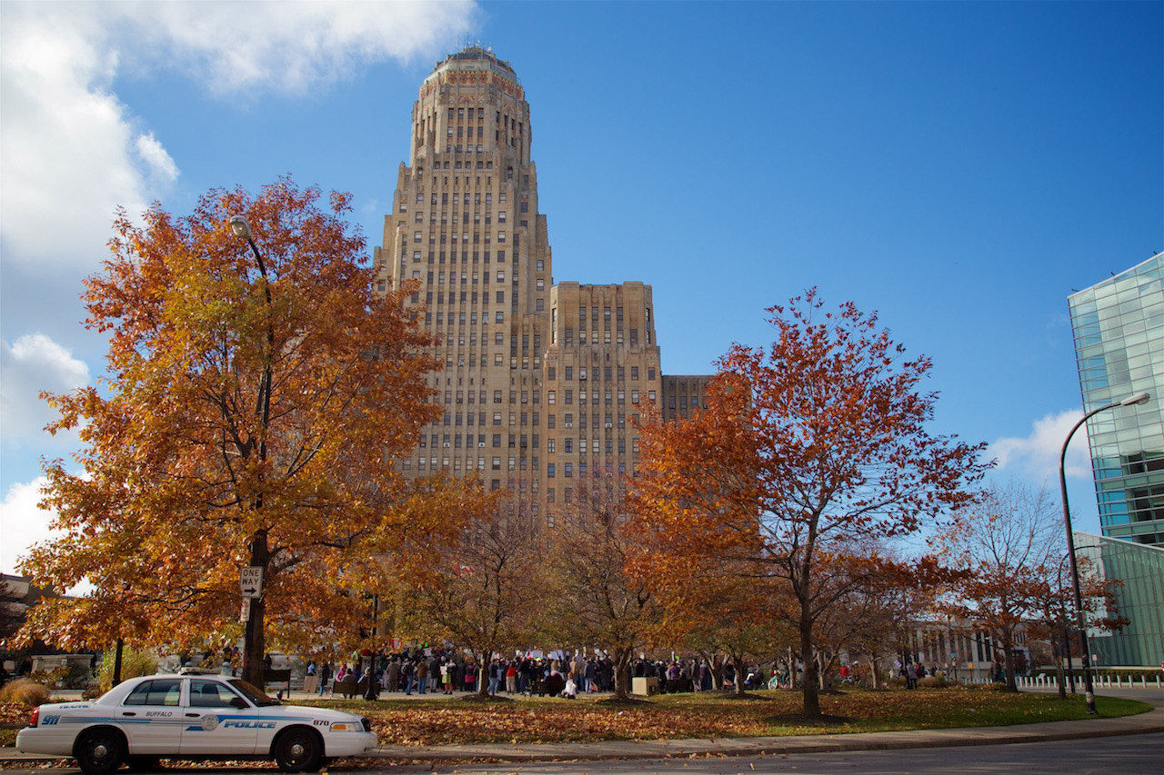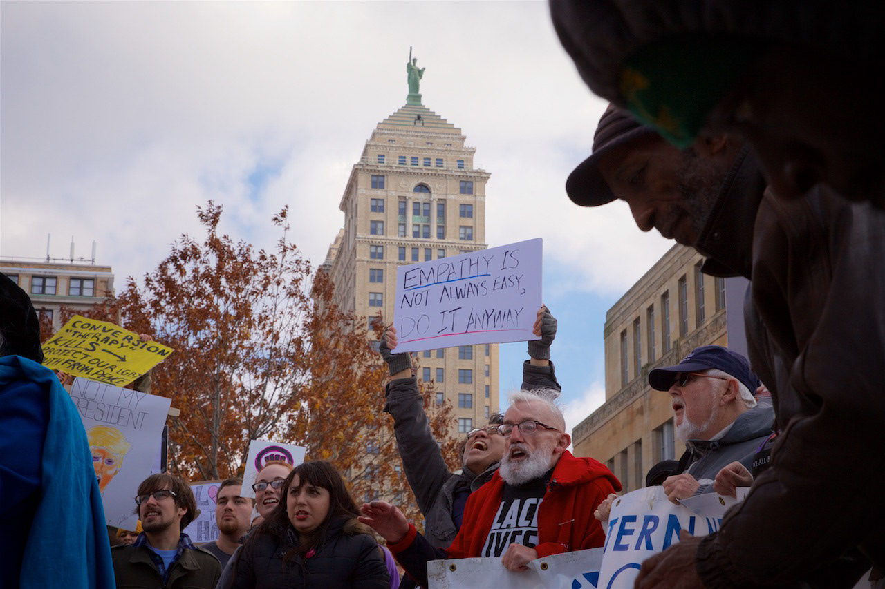 On November 13, 2016, the weekend after Donald Trump was elected president of the United States, protesters gathered in Niagara Square, in downtown Buffalo.