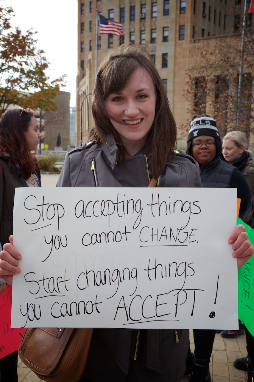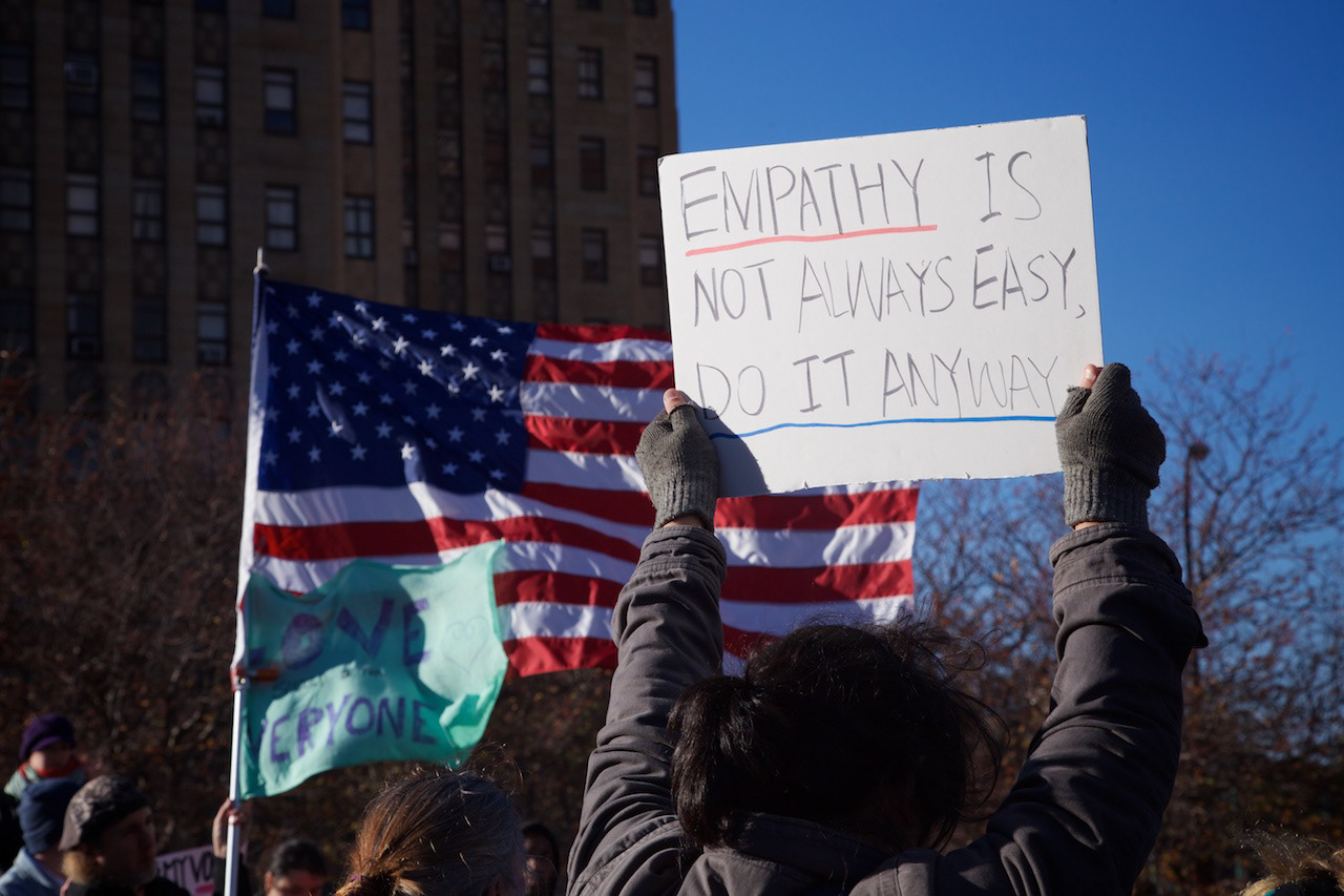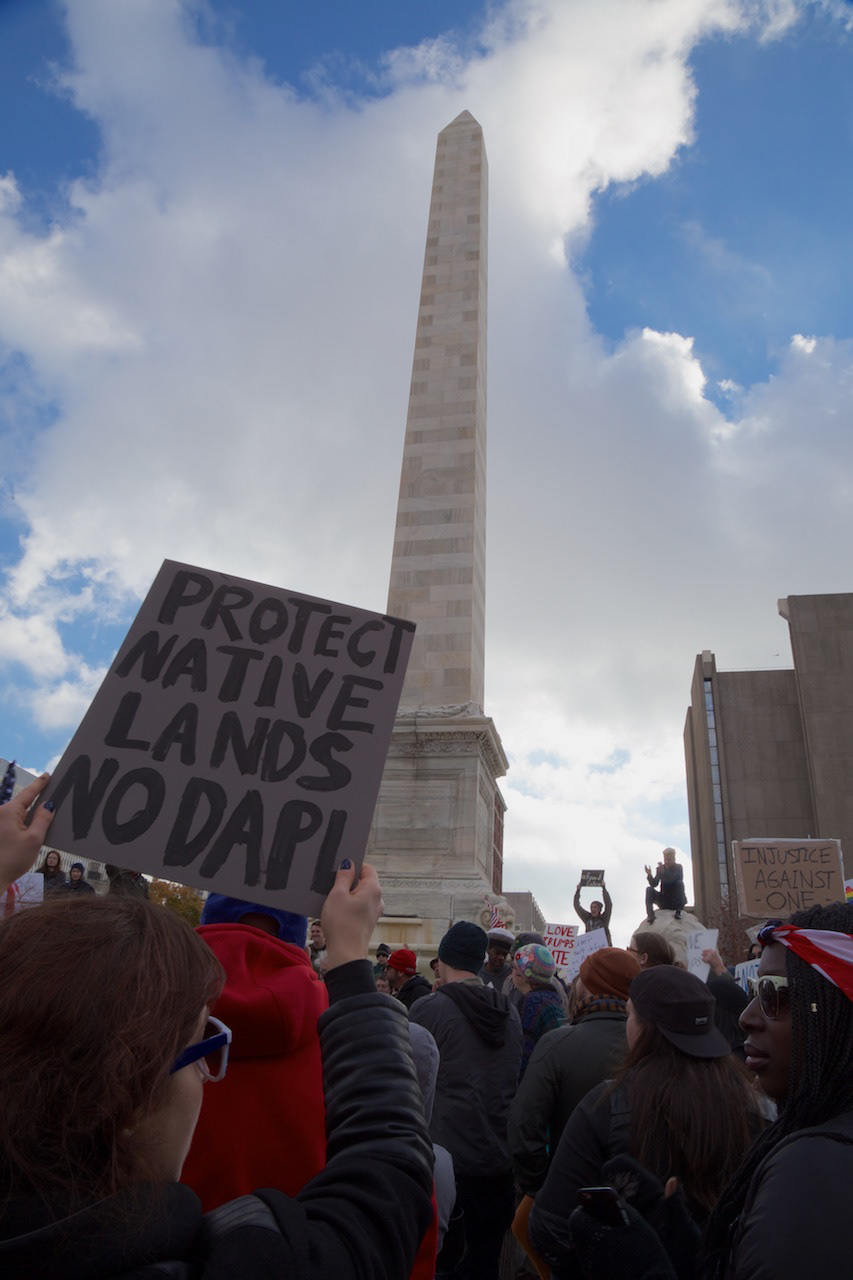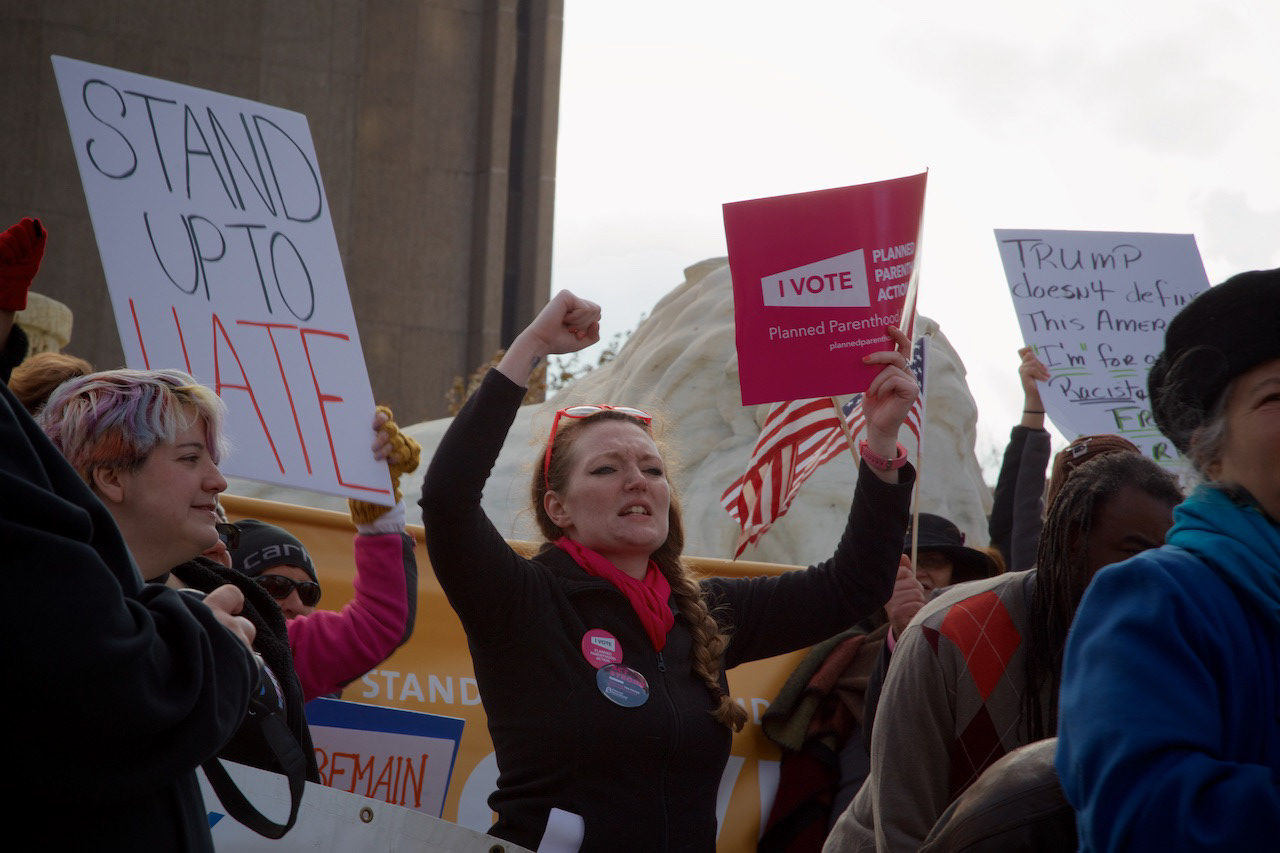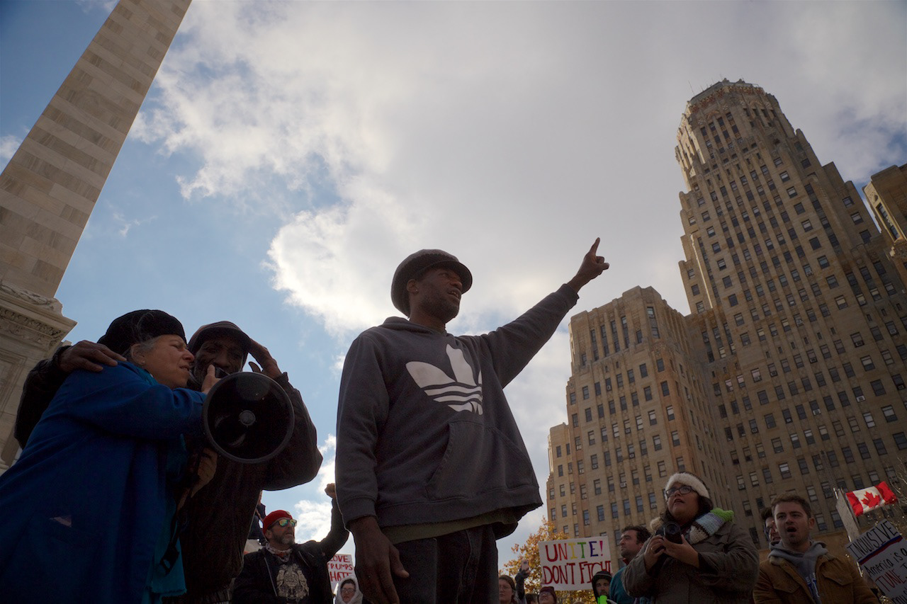 On November 13, 2016, the weekend after Donald Trump was elected president of the United States, protesters gathered in Niagara Square, in downtown Buffalo.